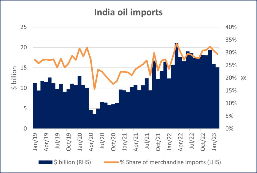 Analysts are now looking at brent crude prices close to $100/bbl in the second half of CY’23. While the possibility of $100/bbl oil cannot be ruled out, a sudden and sharp increase seems unlikely given the fact that concerns over weak global growth dominate market sentiments. What could lead to a spike? Better than anticipated recovery in China, and an escalation in geo-political tensions.