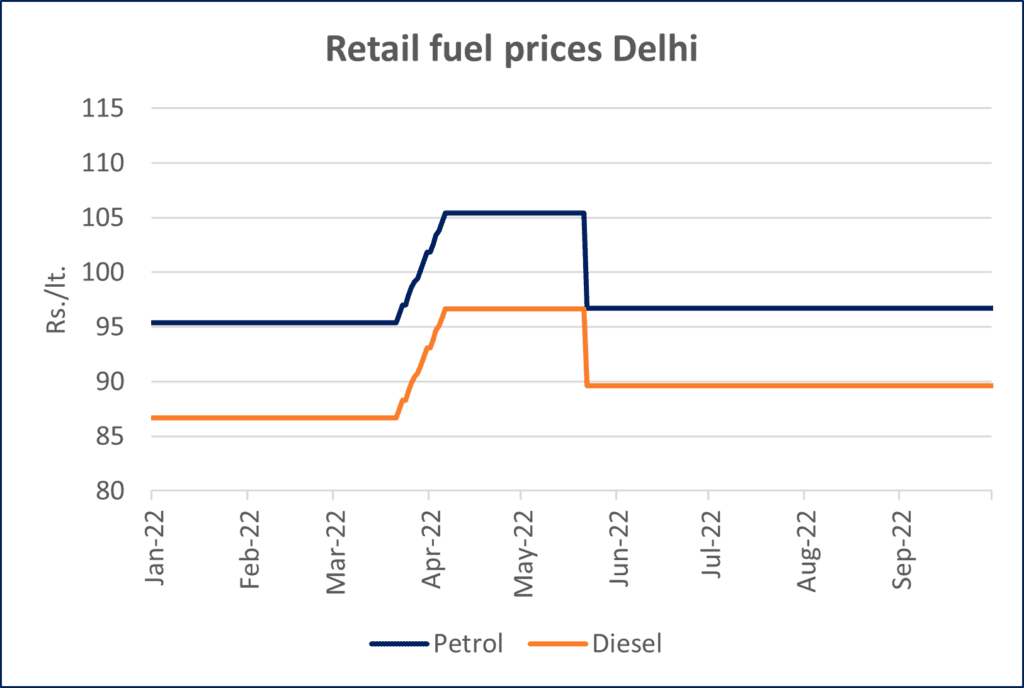 India imports ~5mbpd of crude. A $10 increase in price of crude oil can inflate India’s merchandise import bill by 4-5%. However, in recent months India has been importing major quantities of Russian crude oil, which is available at a 30% discount to international benchmarks. An increase in the price of crude oil impacts inflation via an increase in retail prices of petrol and diesel. However, retail price of petrol and diesel have remained unchanged since May-2022. A hike in retail prices in line with an increase in crude oil prices seems unlikely given the general elections in CY’24 and focus to bring down inflation. An increase would be absorbed by the Oil and Marketing Companies. Hence the impact of this recent increase in global crude oil prices on India is likely to be limited.